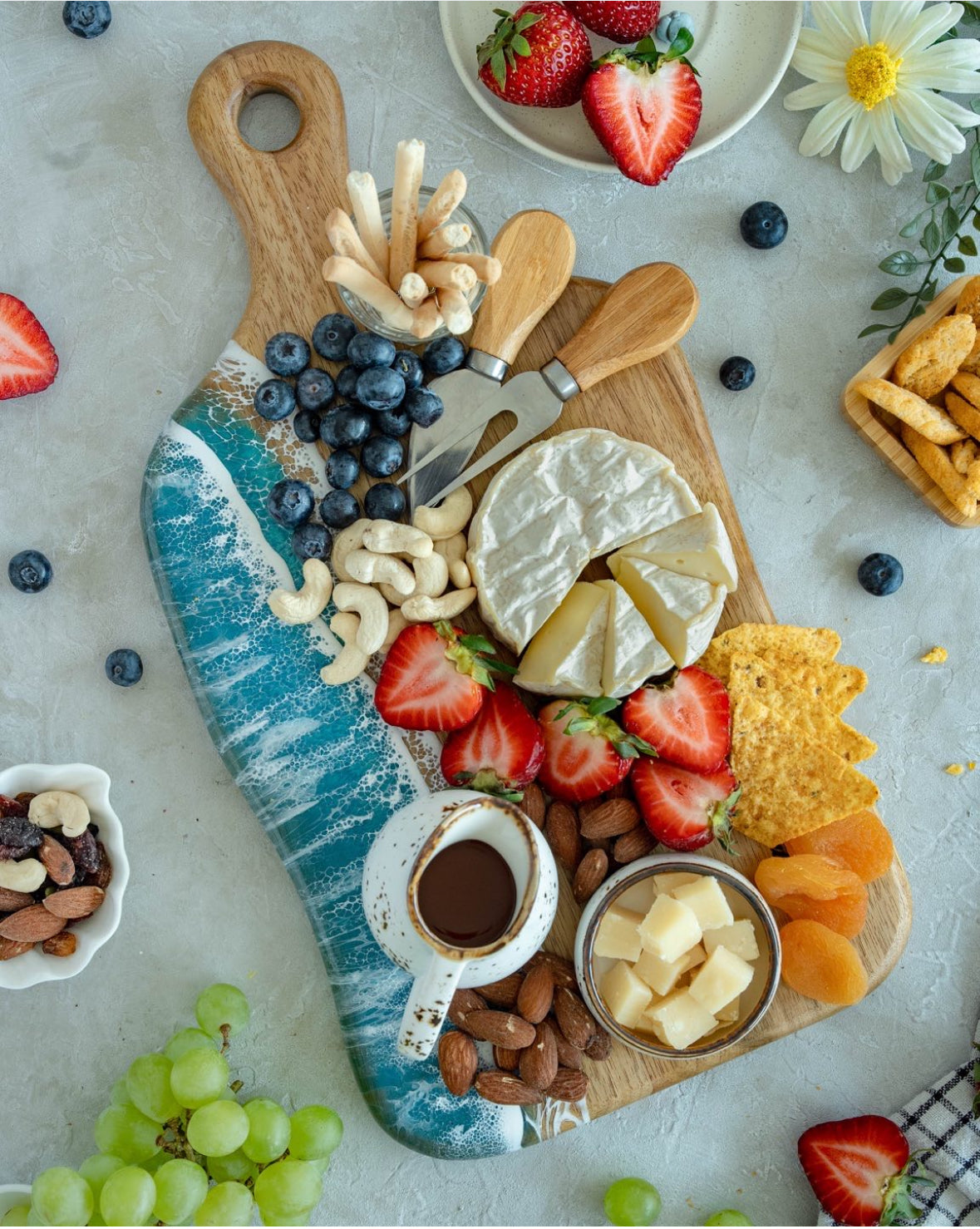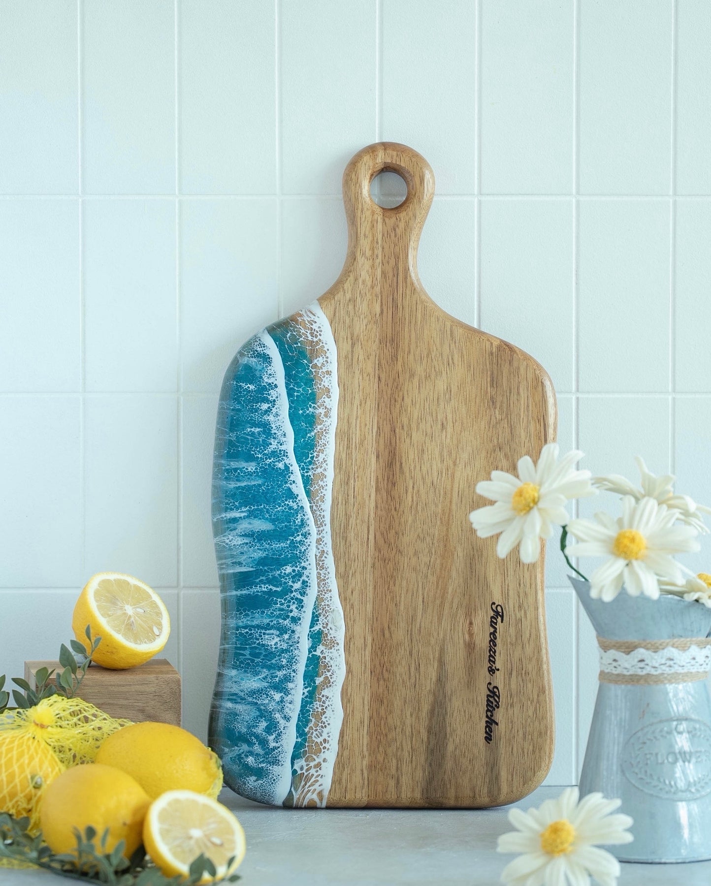 Our Medium Chopping Board is more than just serveware—it’s a statement piece. Handcrafted from sustainable Acacia wood and adorned with a one-of-a-kind resin design, it brings timeless sophistication to your table.Perfect for hosting, entertaining, or gifting, this artisanal creation transforms every occasion into something truly memorable.